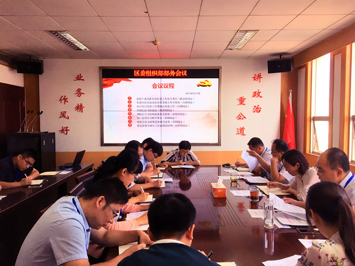 会议分八个议题,陈淑星同志传达了科级干部联系镇街道工作有关事宜,白璐同志汇报了驻京流动党员党委成立情况和市区基层党建工作现场会筹备工作,孙传欣同志传达了乡镇信息考核办法,并汇报了到临沂学习市场党建有关情况,张娟同志传达了部机关党支部规范化建设意见和党员主题活动日等相关情况,伍婷婷同志就部机关相关工作流程作了规范性说明。王霞同志针对各项议题,结合实际,作了重要讲话。